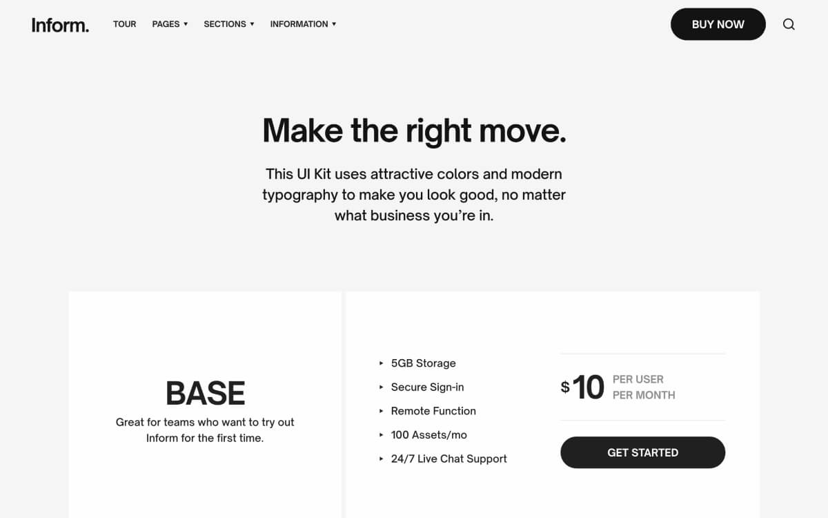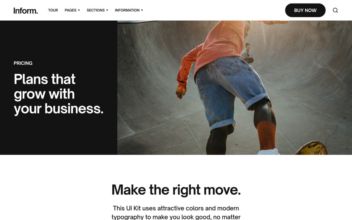 Create beautiful pages with ease using Inform’s expertly styled collection of pages, sections and UI components.
