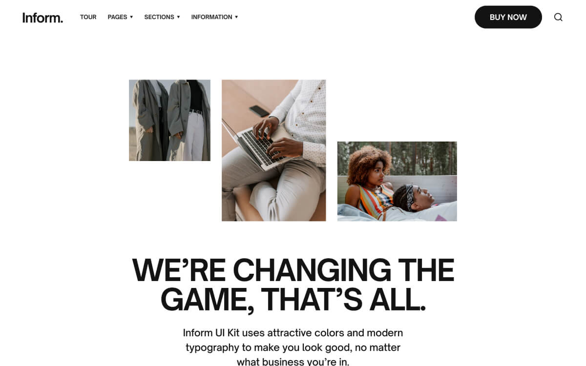 Express yourself through Inform’s bold typeface and no-fuss aesthetic. Everything you need is on-hand with 70 page sections across 26 layouts.